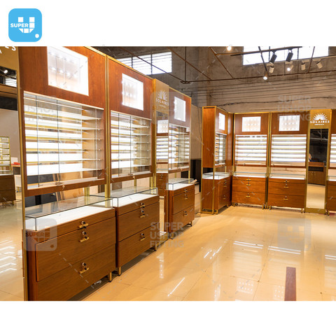 Özel altın perakende gözlük dükkanı iç tasarım dekorasyon güneş gözlüğü depolama ekran kabine optik mağaza mobilya