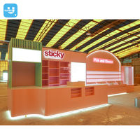 Modern tatlılar butik LED ışık Accent akrilik vitrin rafları Trendy özel renkli ahşap şeker mağaza rafı